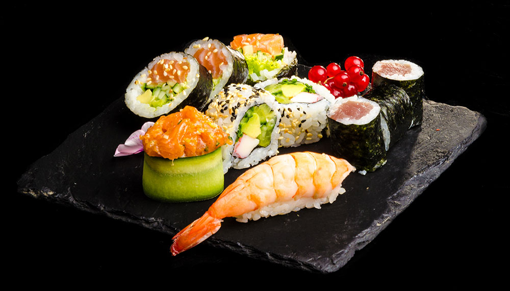 Hosomak with Nutella in tamago. California with roast salmon, coated in m&m's, kit kat or lion. Nigiri with boiled shrimp.